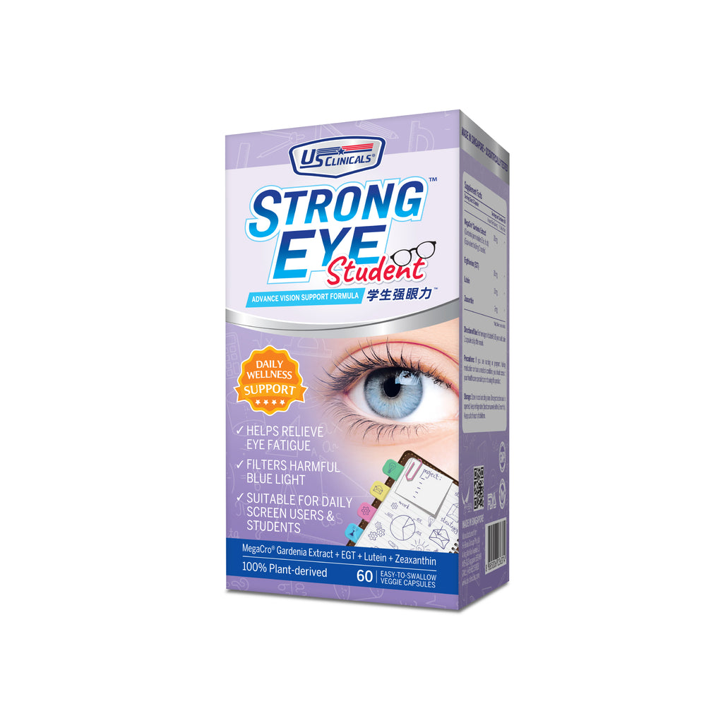 US Clinicals® StrongEye Student is specially formulated to support clear vision and comfort during long hours of study or digital screen use. With blue-light filtering carotenoids and antioxidant nutrients, it helps maintain visual clarity and focus for modern students.