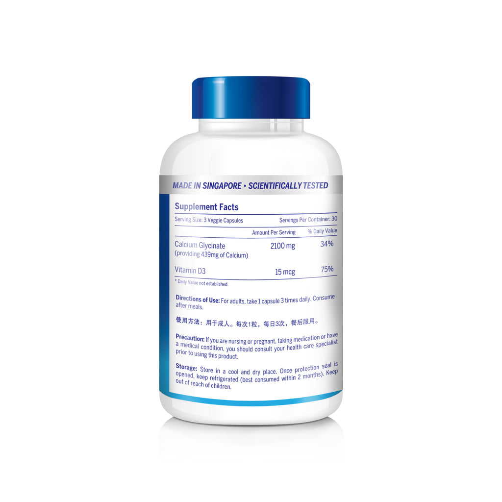 Made with Calcium Glycinate, a gentle and well-tolerated chelated form of calcium.